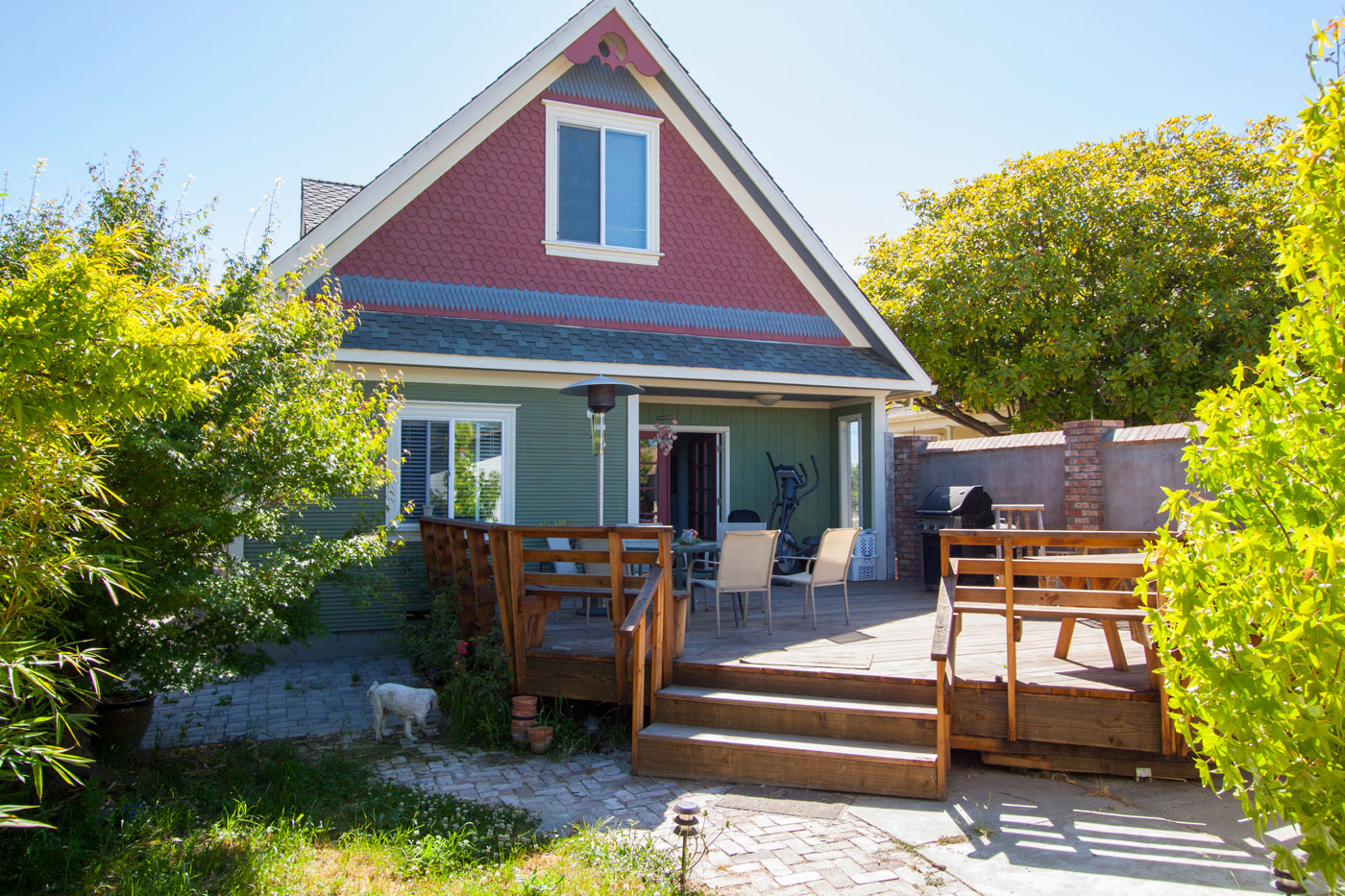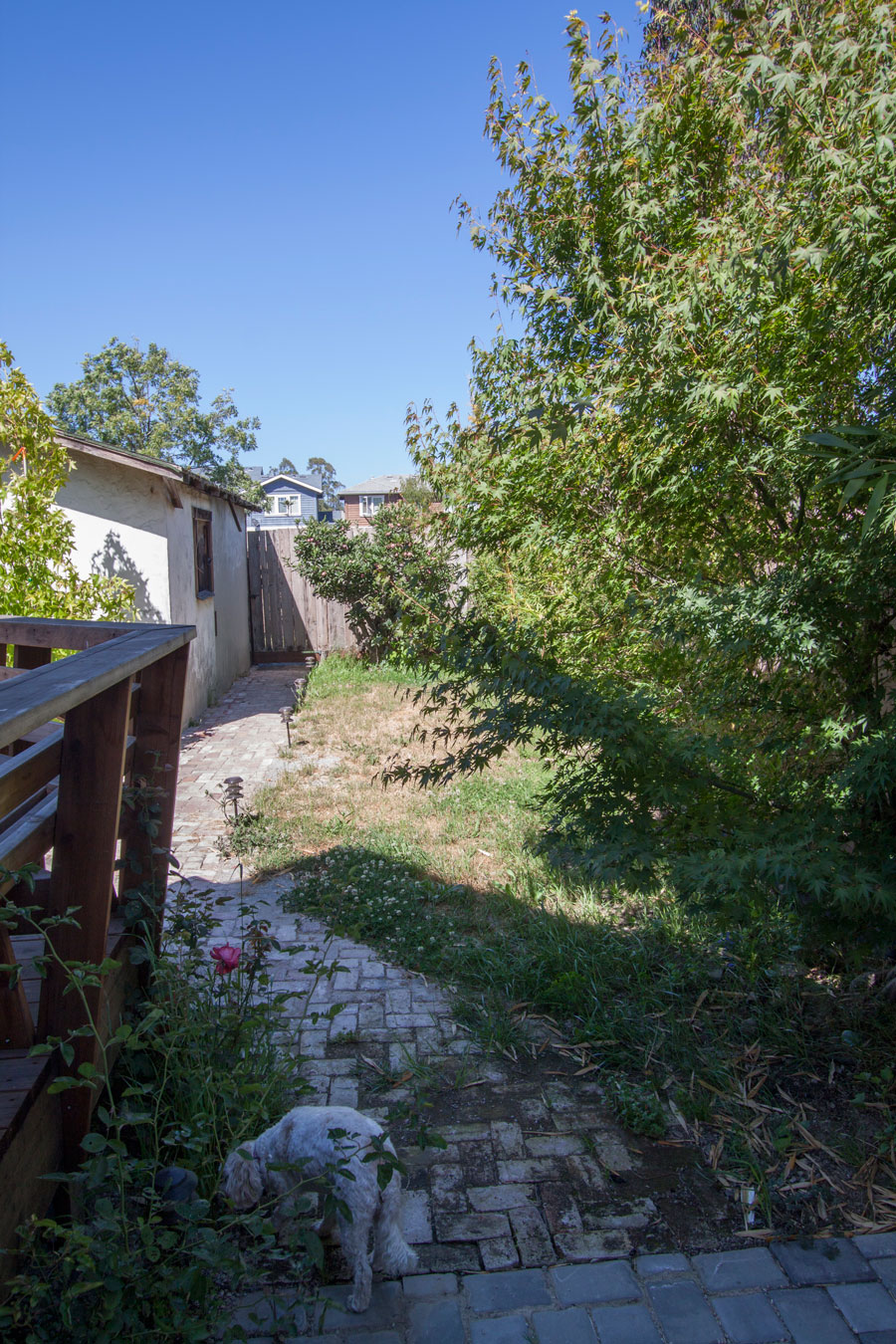 The back yard is small but fully enclosed so pets are free to wander. Automatic sprinklers take care of everything but the grass.