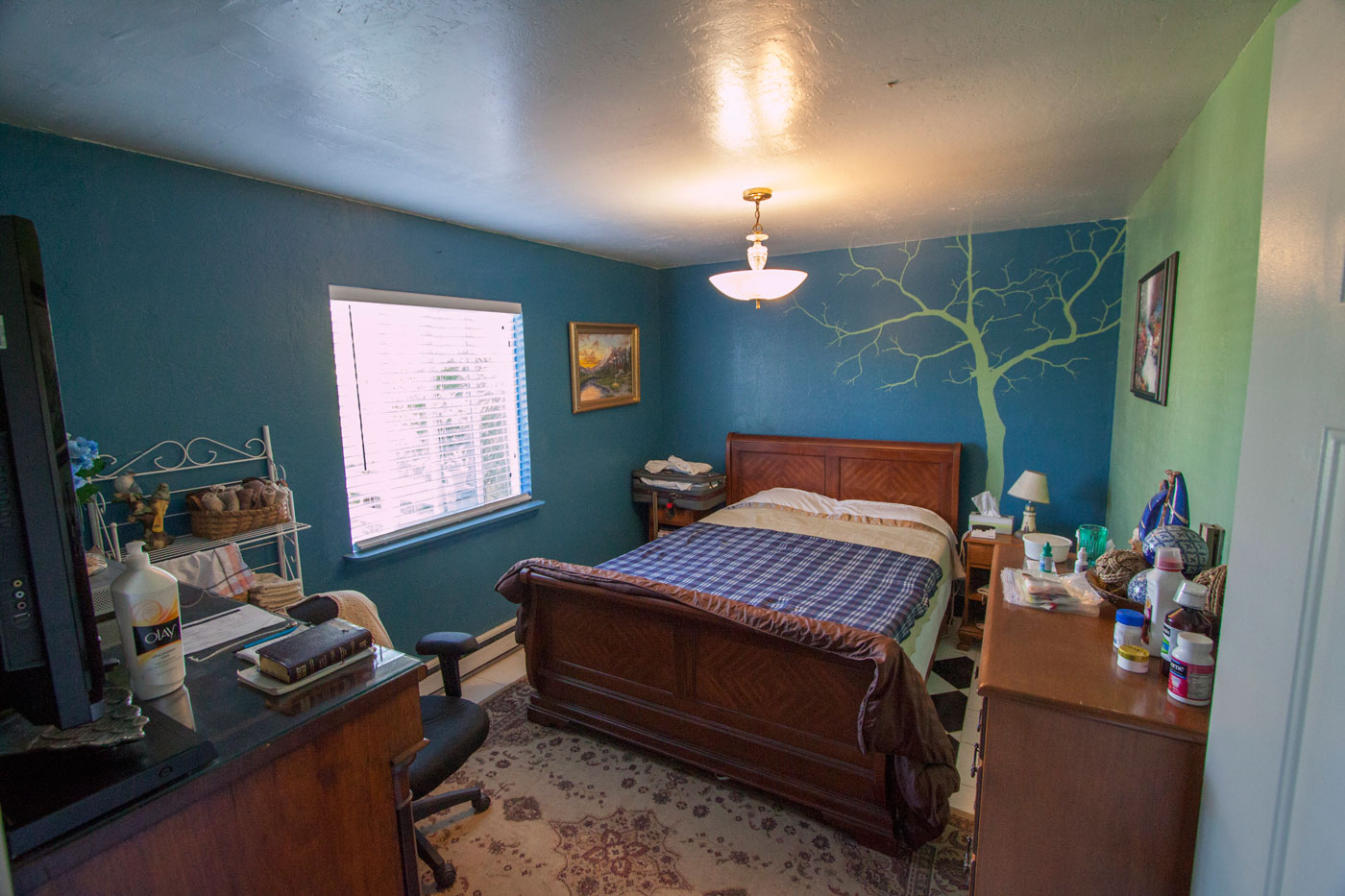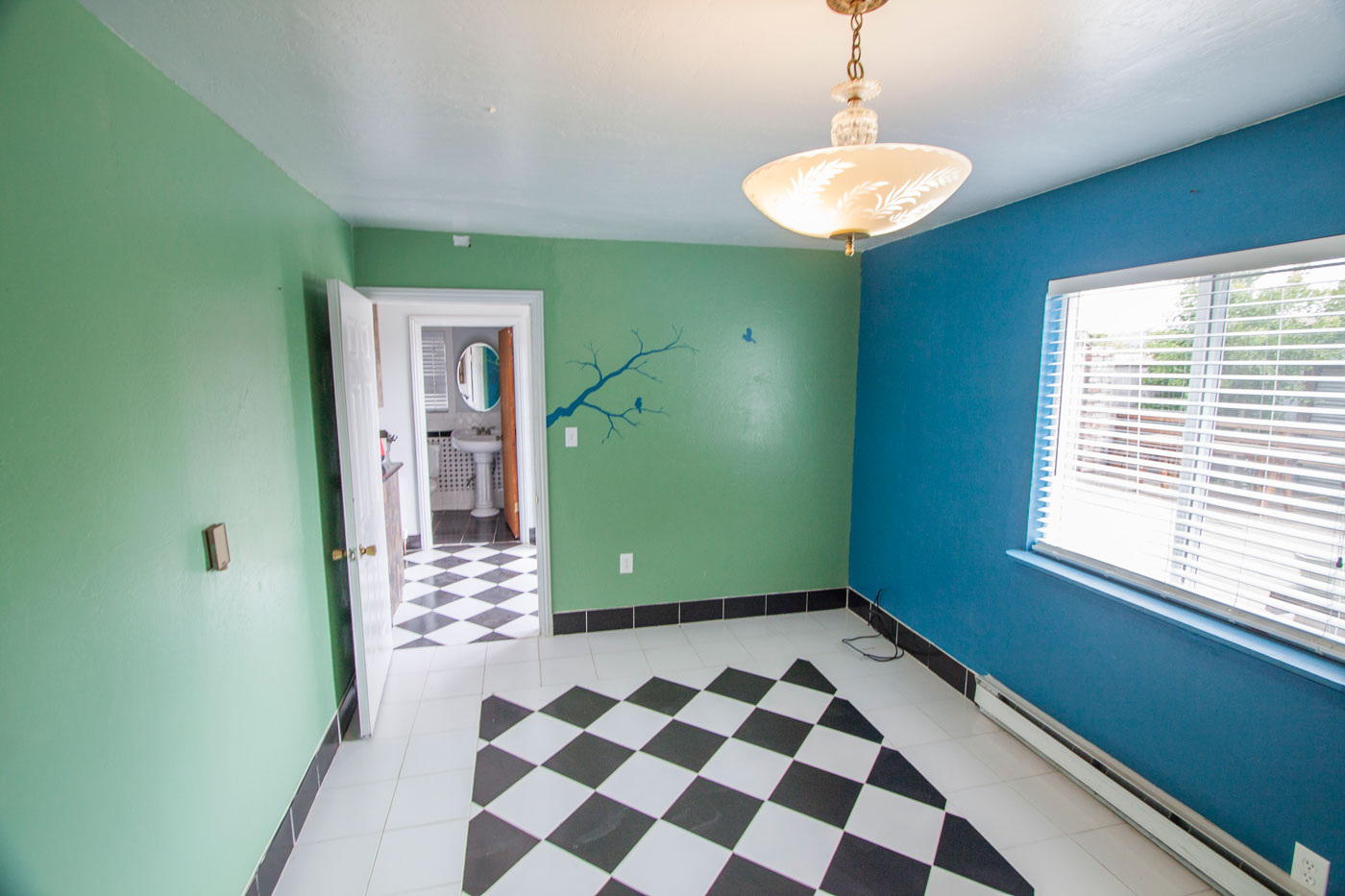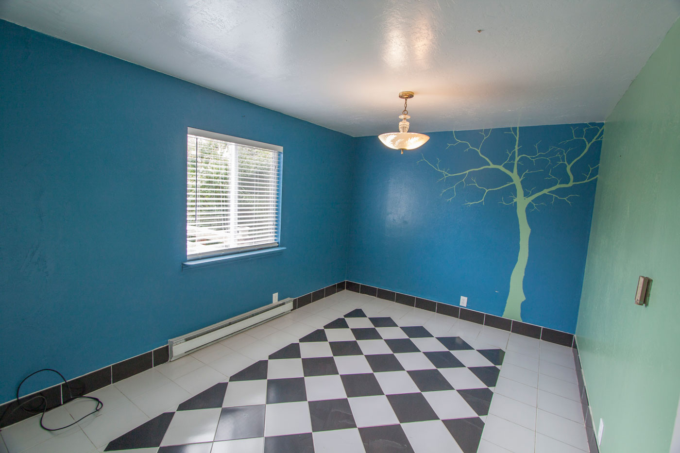 The second bedroom or guest room is about 10' x 15' with a great custom mural on the wall. It has its own electric heat with a thermostat in the bedroom.