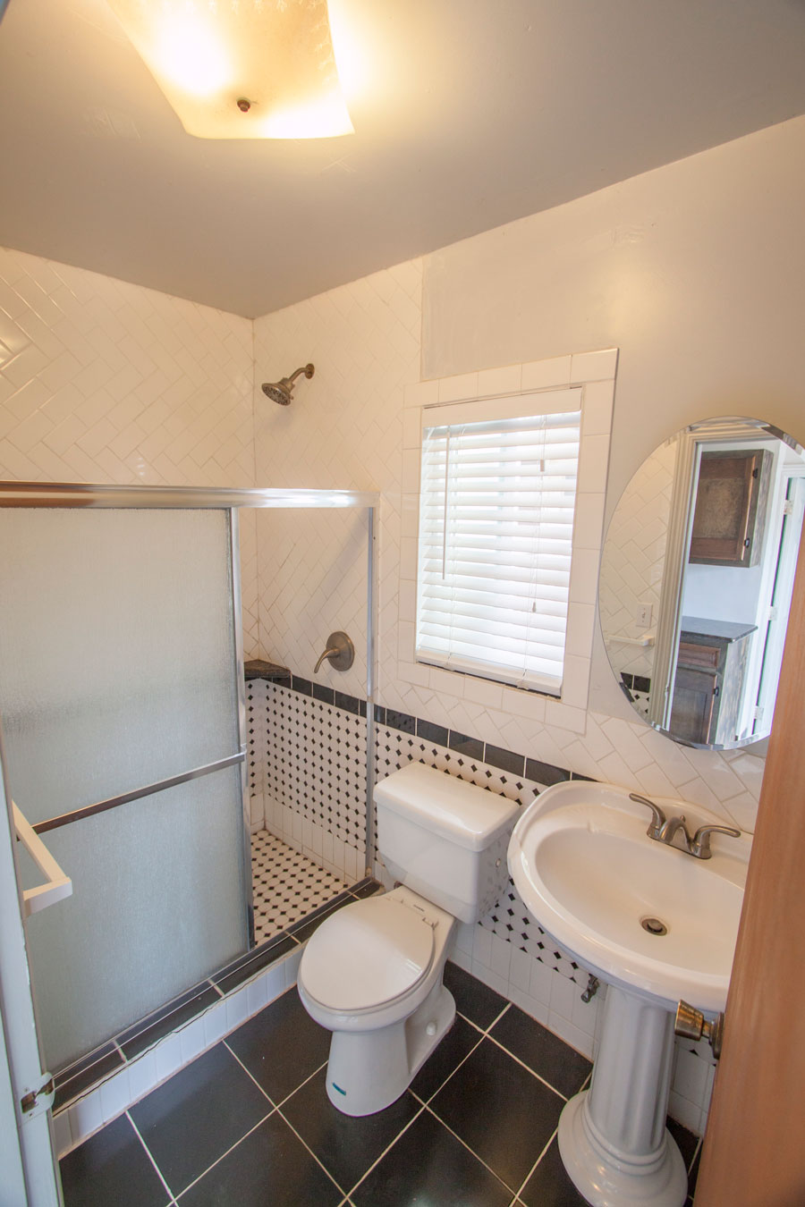 The 2nd bathroom includes a full sized shower with grab bars.