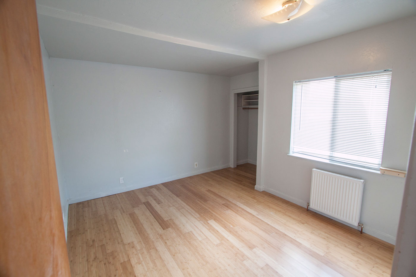 The smaller of the two closets is in the master bedroom.