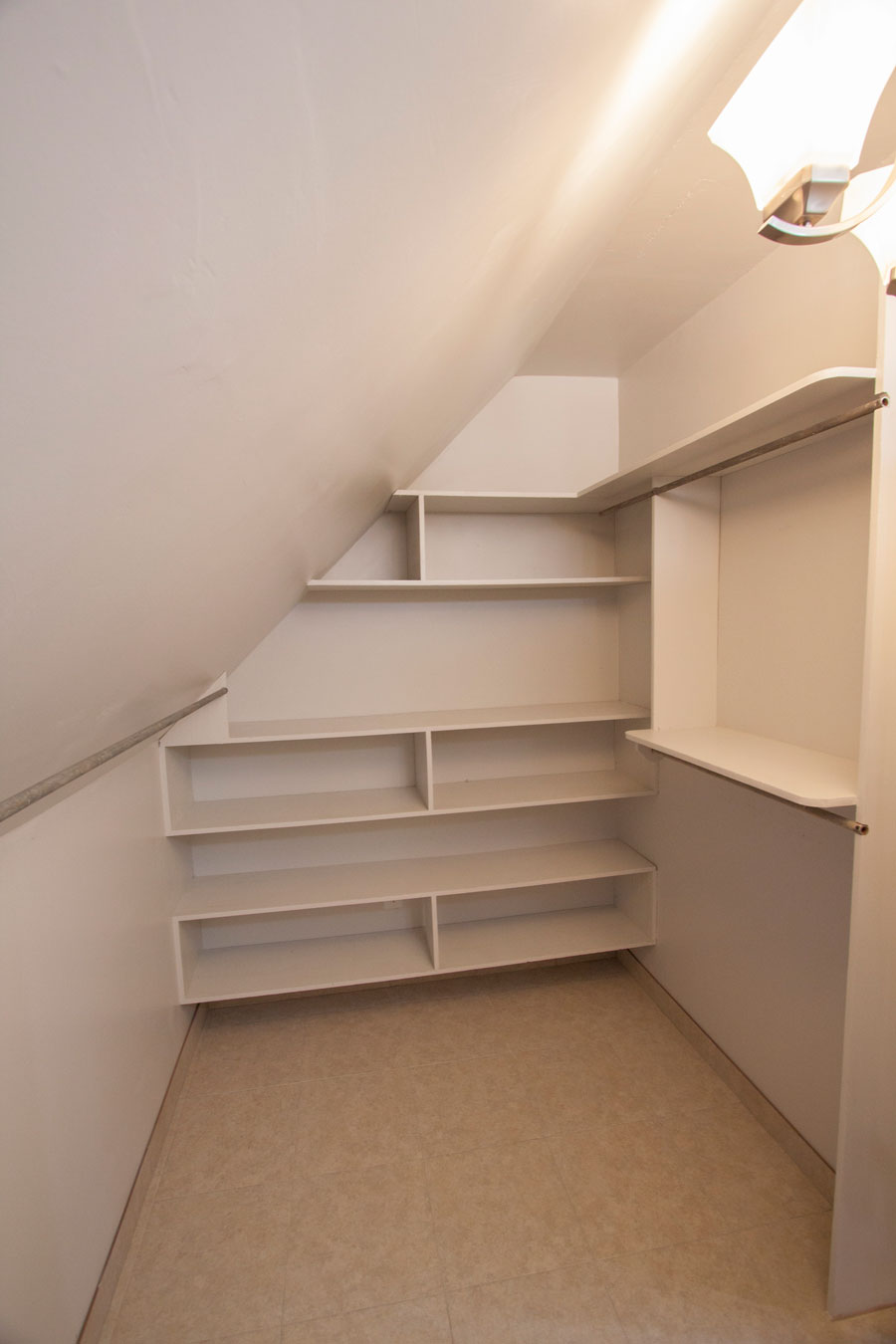 The wing to the left we set up with two offices. The small panels in the wall access storage space.
