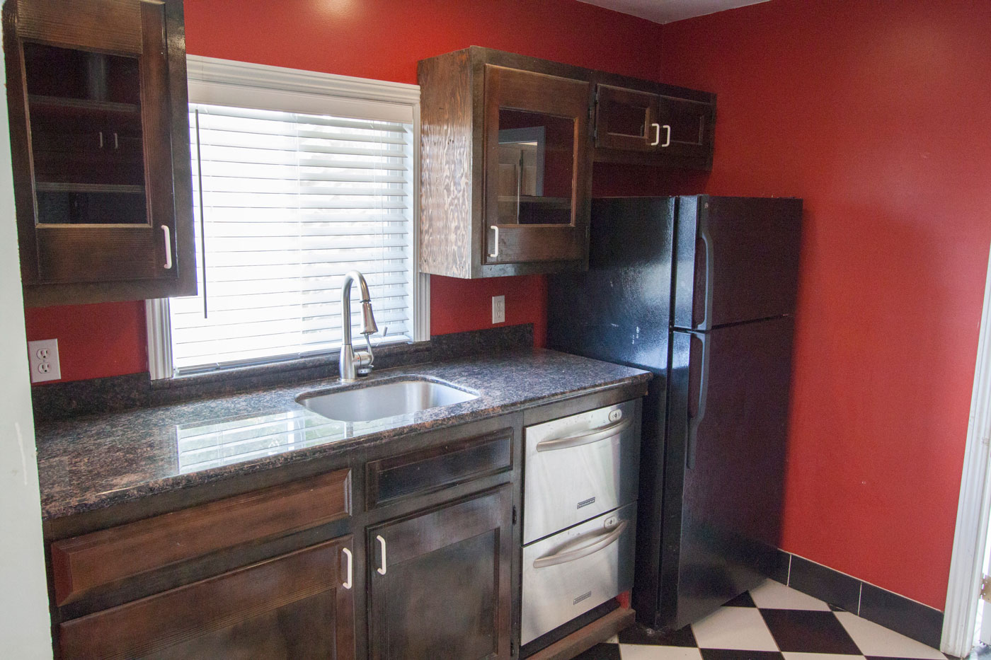 The kitchen is small but very efficient. Please note that the counters are a little higher than normal so this kitchen is perfect for tall cooks! Nice granite with an amazing double two drawer dishwasher.