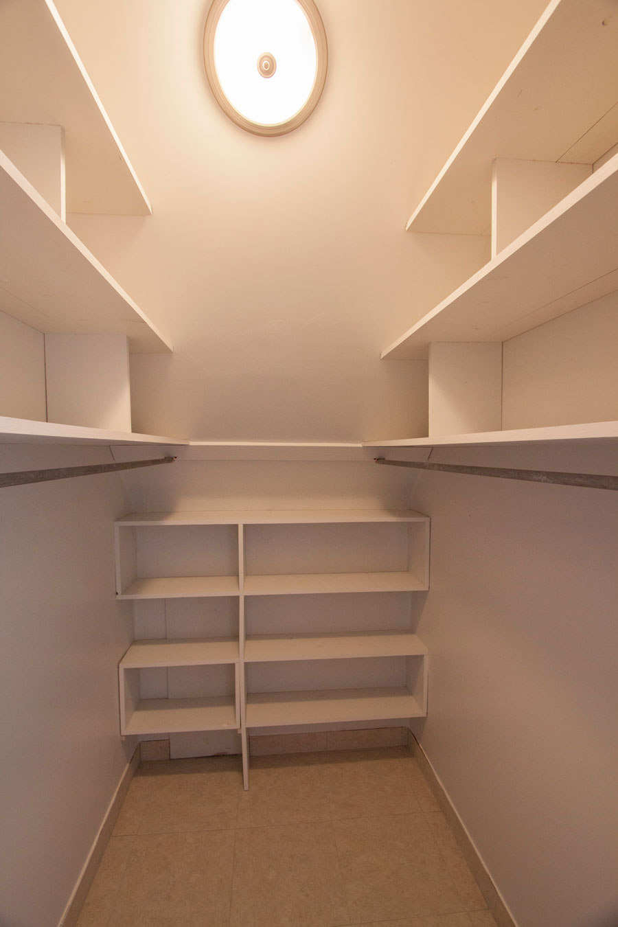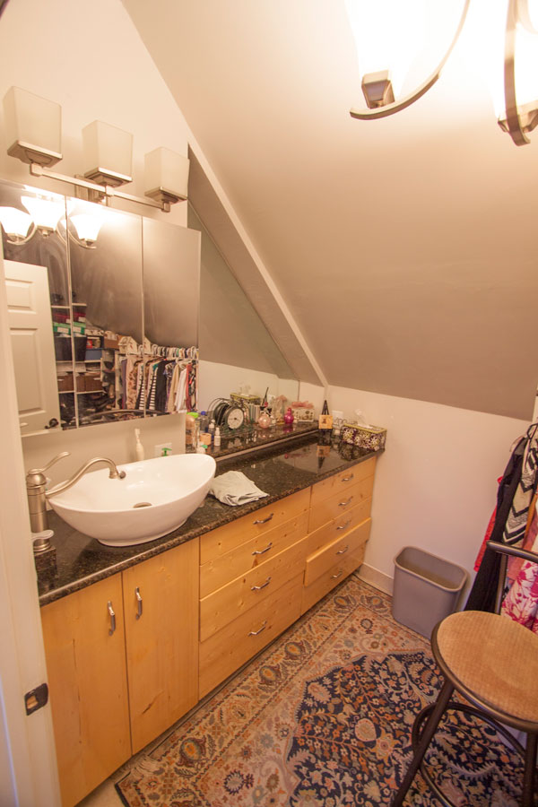 Next comes the dressing room with granite counter and sink, lots of mirrors, drawers and a huge closet with storage shelves.
