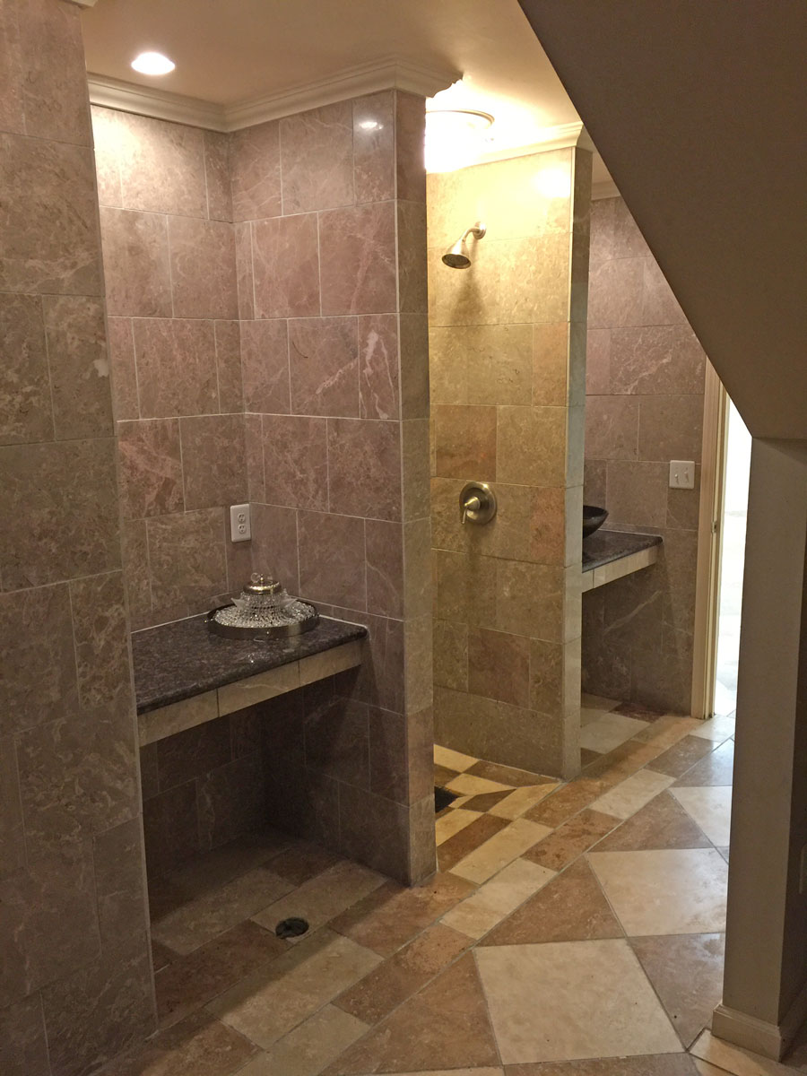 The private office has a small sink and shower and a nice place for a coffee maker. The restroom is behind the door shown in the corner. It is currently having some tile work done but will be ready soon.